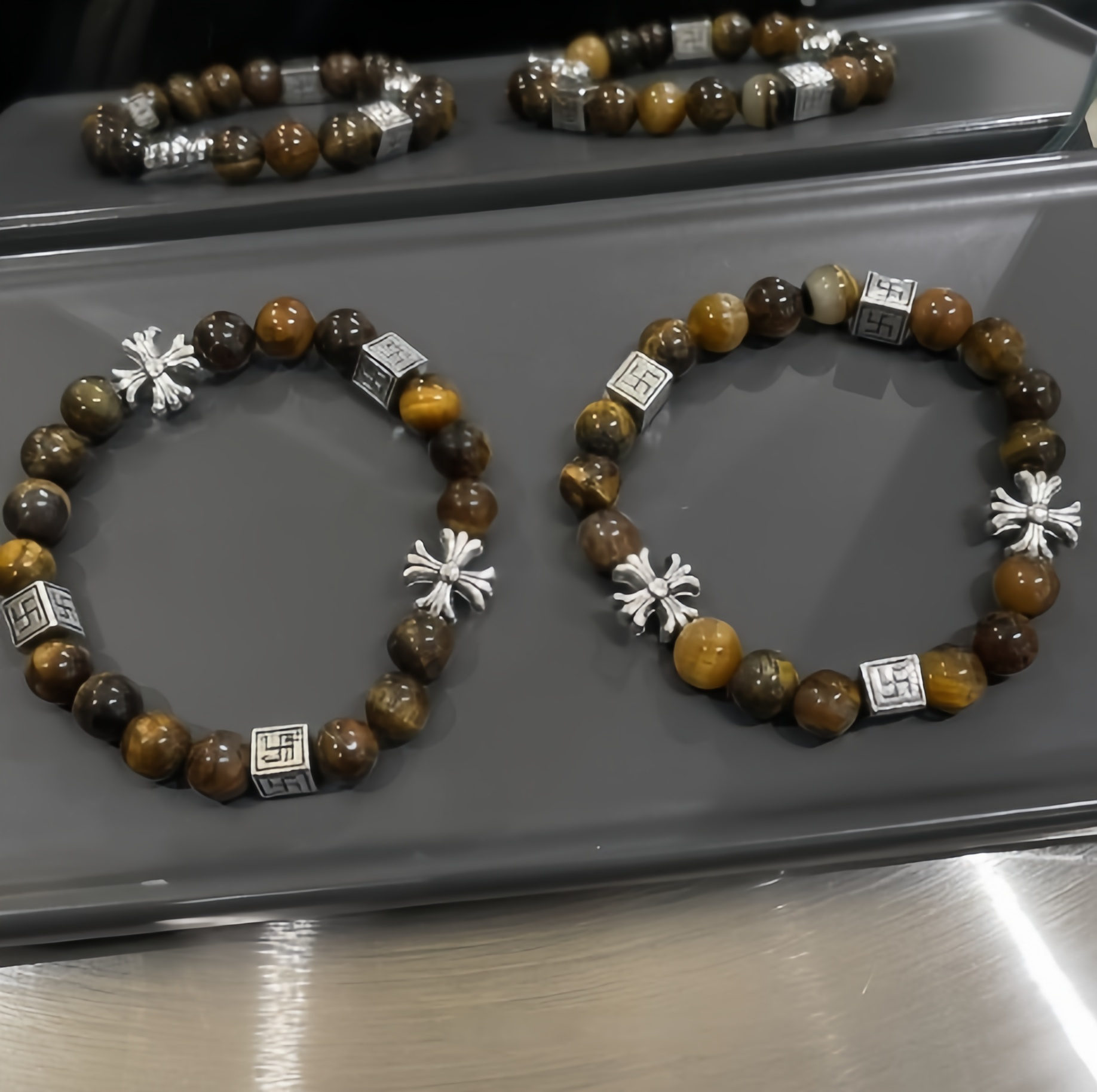 This talisman unites powerful symbols from Eastern and Western traditions to safeguard your well - being and future. The Buddhist swastika purifies body and mind, preventing overwork and fostering health. The cross flower repels negativity while attracting noble influences and financial blessings. Complementing these, the eye stone sharpens your vision, revealing opportunities and expanding your prospects. Crafted from tiger eye stone and alloy, this piece serves as a steadfast guardian for your health, wealth, and destiny.