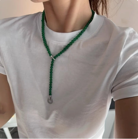 Let the soft green glow of this necklace bring you a sense of balance and renewal. Each bead reflects the energy of life, supporting emotional stability and overall well-being. Worn close to the heart, this piece enhances inner peace and harmony, making it an essential part of your everyday wears.