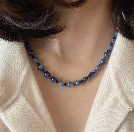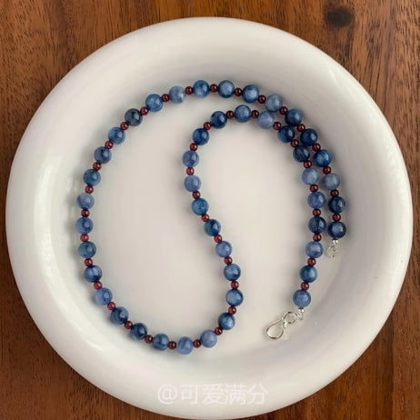 Designed to enhance both love and success, this elegant necklace features a stunning combination of natural blue kyanite and vibrant red agate. Blue kyanite is known for improving communication skills, fostering understanding, and attracting appreciation in the workplace, making it a powerful stone for career growth. Red agate, rich in passion and warmth, strengthens romantic bonds and keeps the spark alive between lovers. Set with S925 sterling silver accents, this necklace is more than just a beautiful accessory—it's a talisman for deeper connections, personal growth, and a flourishing future.